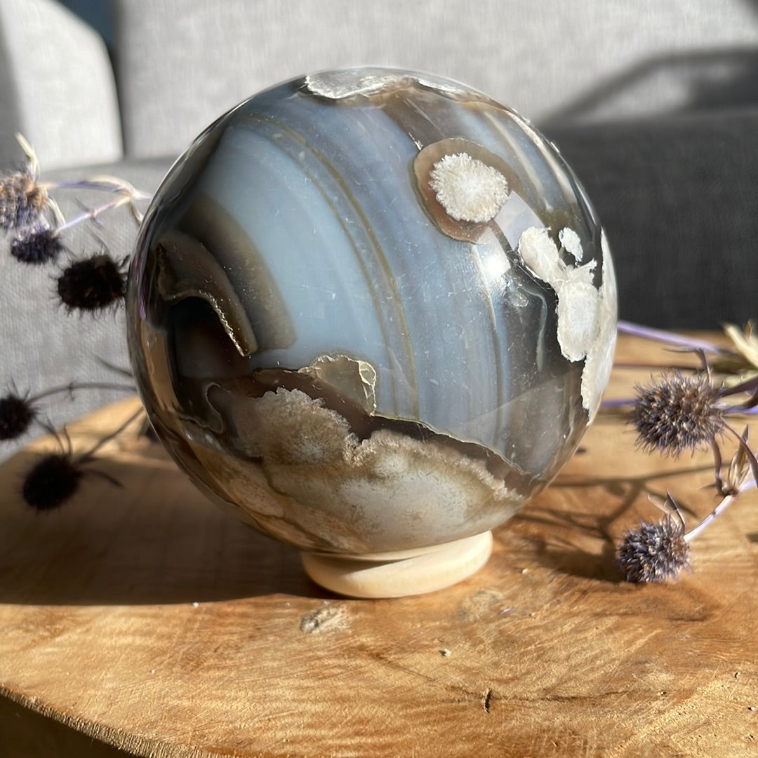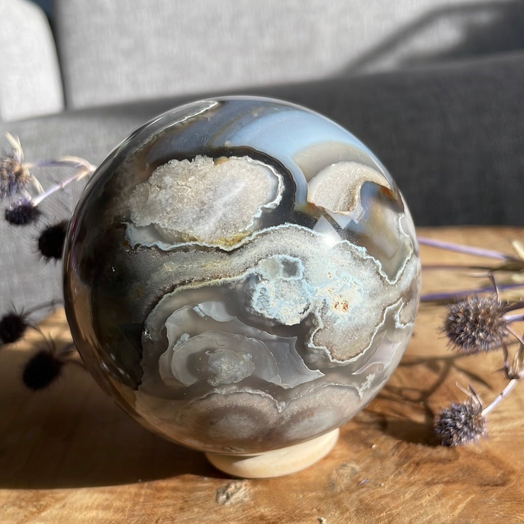 Tolle gebänderte Blumenachat Kugel mit Glitzer Druse