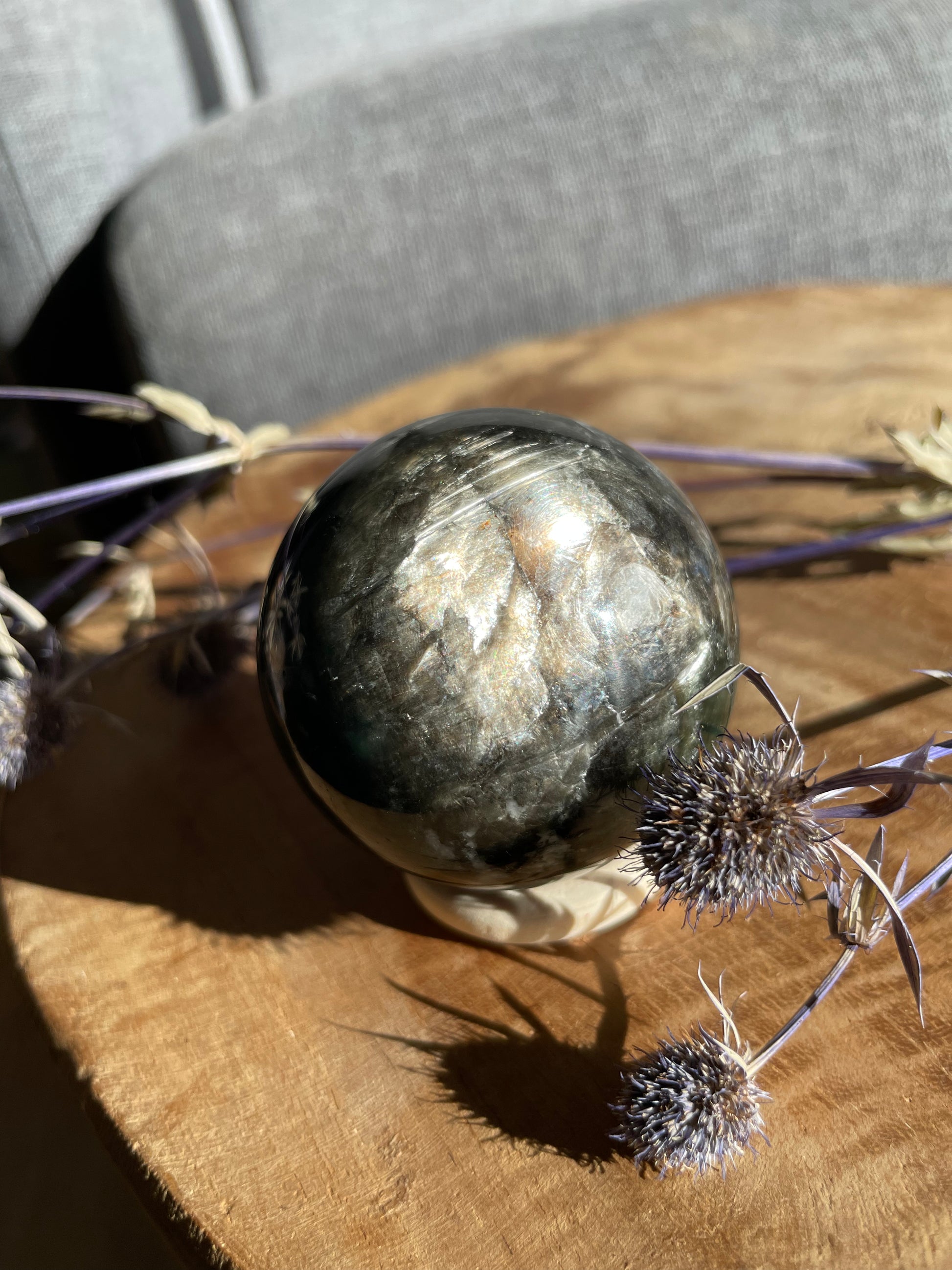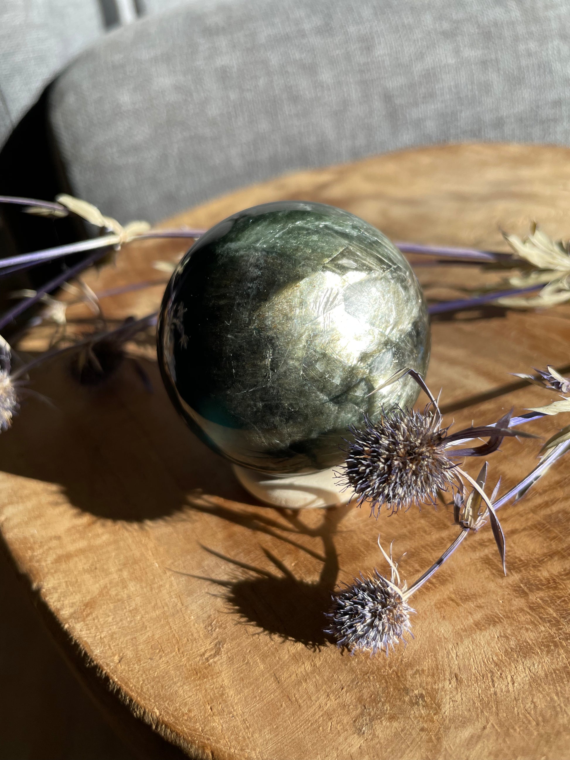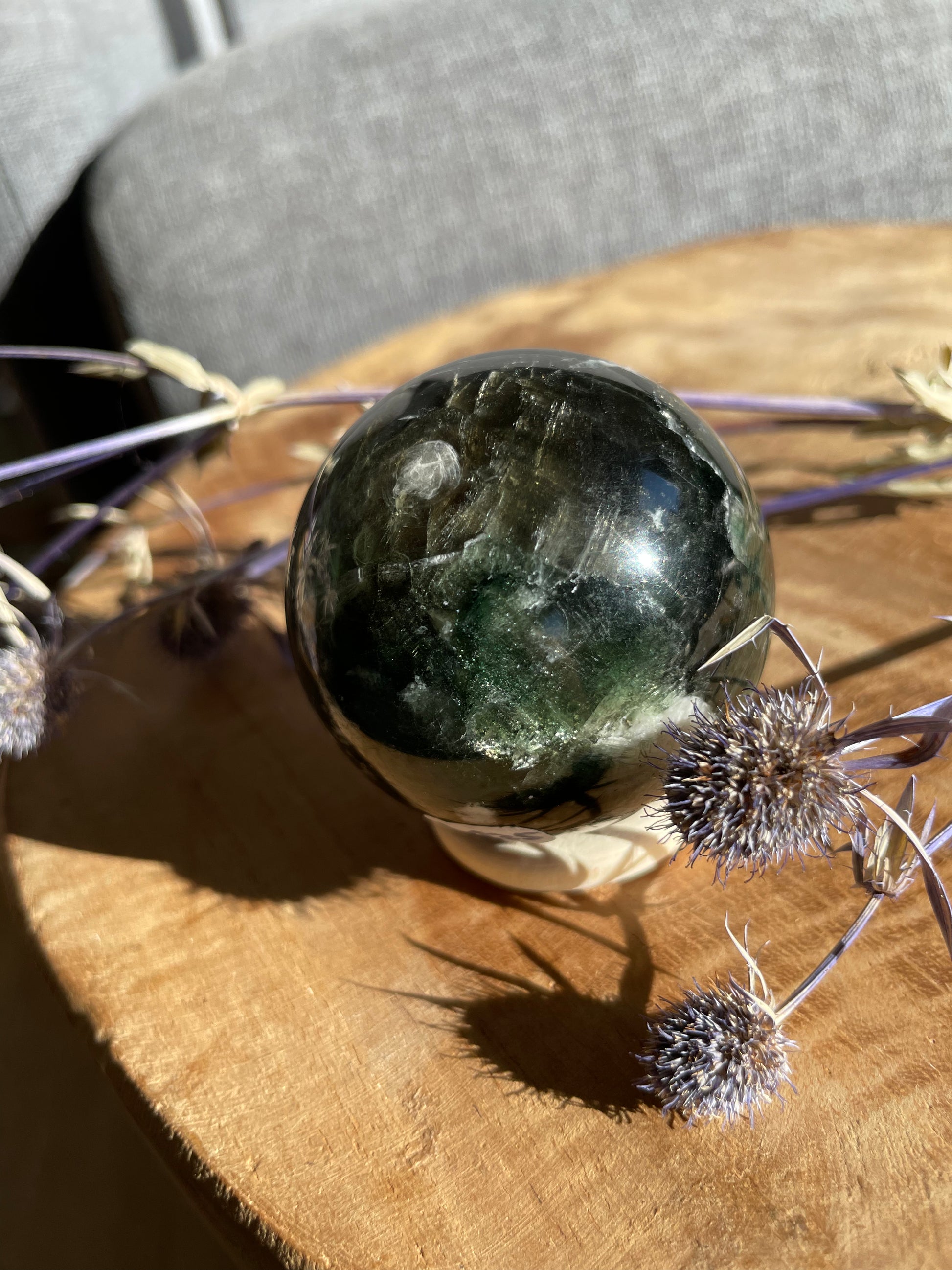 Wunderschöne grüne Lepidolith Kugel mit tollem Flash und schöne Farbe