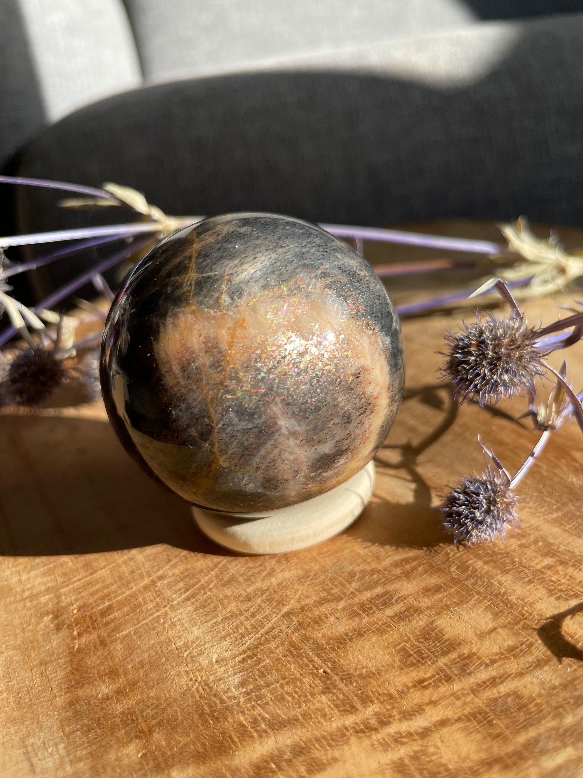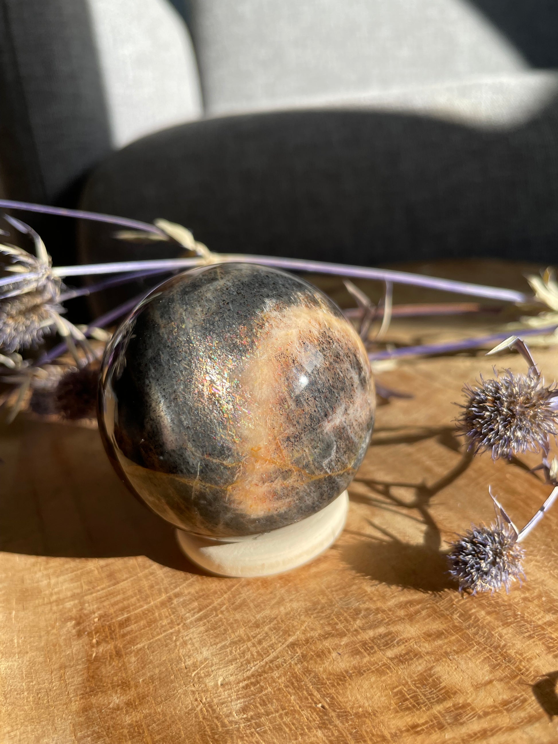 Tolle Schwarze Sonnenstein Kugel mit Lattice Sunstone